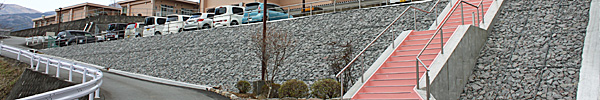 ■ 法面保護工、裏込め工に適した薄型タイプのふとんかごです。